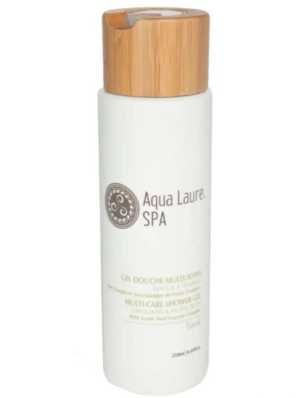Daily cleanser and exfoliator with sparkling Tonik scent. This shower gel lathers to a rich foam, cleanses and exfoliates in one step, without scrubbing! Formulated with exotic fruit enzymes that digest dead skin cells, and powerful hydrating, softening, brightening botanical extracts, it leaves skin thoroughly cleansed and moisturized. Directions: In the bath or shower, apply on body and work into lather. Work in circular movements to allow enzymes in the gel to exfoliate. Rinse thoroughly. Follow with Aqua-Laure Detox & Firming Veil or Aqua-Laure Dermo-Performance Butter. Recommended For: All skin types. Unisex Main Ingredients: Apple and Oat Amino Acids – Fruit Enzymes Complex – Lactic acid-based moisturizing complex – Ceramides – Powerful Antioxidant Complex – Natural complex from hive – Asian Plants Cocktail – Brightening Complex – Aloe Vera